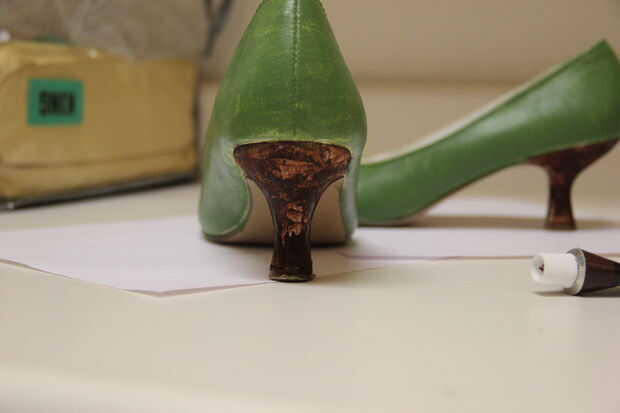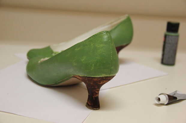Utilicé el pincel para los talones porque lo hizo como madera junto con una pintura marrón de madera. También hice dos capas.