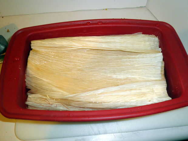 Remojar las pancas de maíz antes de empezar. Sólo necesitan reposar unos 15 minutos.