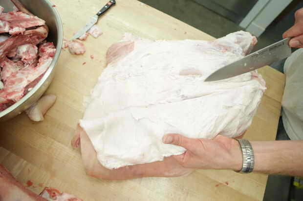 Analizó un conjunto cerdo y son lo bastante afortunado como tener un sous vide la máquina, así que puse unas 12 libras de carne de cerdo asado en el sous vide noche a 140. Fue super tierno. Si no tienes un cerdo entero o sous vide, comprar lacón o tope de carne de cerdo y lento cocer a fuego muy lento durante 6 horas o cocinar durante la noche en un crockpot. También puede agregar dos dientes de ajo, una cebolla picado y sal y pimienta. Guardar el caldo que cocinan en y usar esto cuando se mezcla la masa.