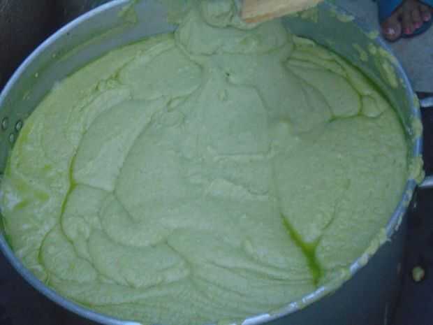 A continuación, vierta el licuado y condimentos (debe ser bien licuado sin restos) y moviendo continuamente, agregar salsa de soja al gusto, se mueve bien hasta que la habitación estancia incorporada a la mezcla continuamente agregando especias y sal (al gusto), verá cómo poco a poco la mezcla se espese cuando él esté listo, retirar del fuego y deja enfriar (se puede dejar para el día siguiente).