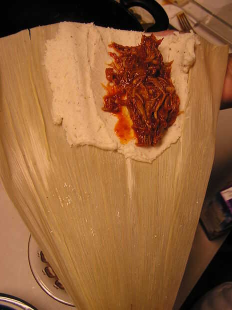A continuación, encontrar la parte inferior del tamal y plegar la parte inferior de la cáscara.