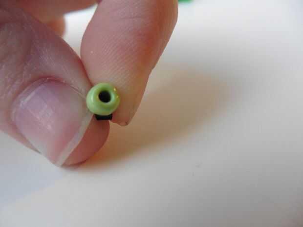 Usé dos cuentas pequeñas de madera y luego añade una perla de la concha en una inclinación de la cabeza.