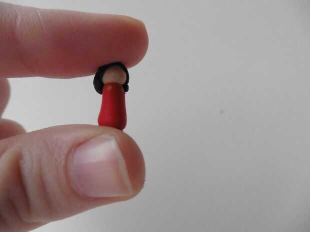 Formó una pequeña figura de barro, sin embargo fácilmente podría sustituir un grano rojo.