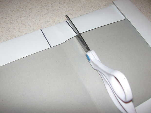Ahora habrá trazado cuatro líneas, dos a cada lado de la caja. Tomar la tijera y cortar en cada línea para formar dos lengüetas.