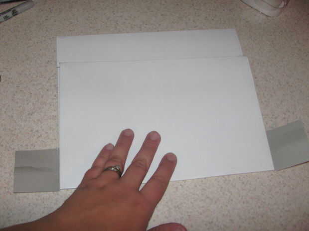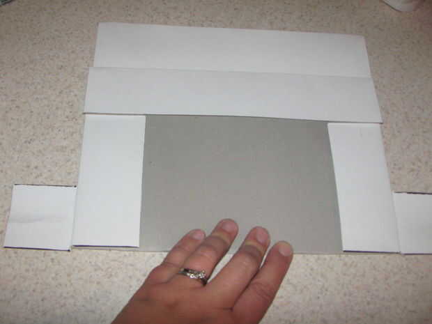 Con lengüetas dobladas hacia afuera, doblar el cuadro como muestra la imagen en ambos lados.