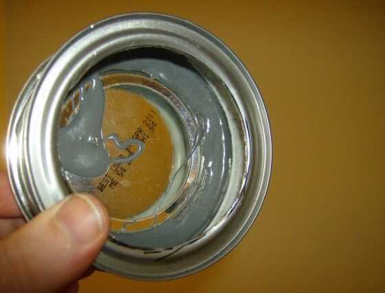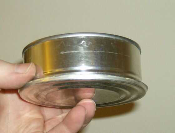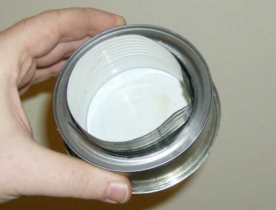 3.) muy importante: uso el JB Weld para "pegar" la tapa al revés del grande puede a la parte superior (es decir: parte que se cortó) de mediano poder en el interior. Asegúrese de que quede centrado. Releer esto, entonces busque en las imágenes para asegurarse de que lo entiendas. La lata grande tapa tendrá que dar la vuelta por lo que el "labio" caras "hacia arriba" en la base, o no será útil como una tapa. Descubrí que un pedazo de cinta o abrazaderas fueron útiles para mantener las piezas en su lugar mientras se aplica el JB Weld.