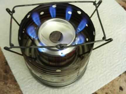 Tenga en cuenta que si lo desea, el penique de la estufa sí mismo puede ser al revés y utilizado para quemar combustibles de estado sólido como el esbit lengüetas de combustible.