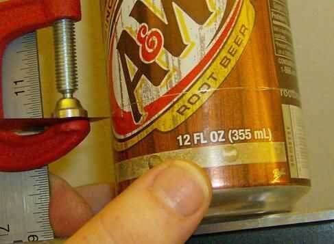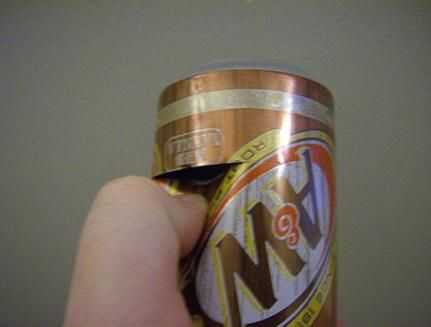3.) utilizando los pulgares, presione suavemente en la parte superior de la lata para hacer el "agujero" continuar "rasgar" a lo largo de la línea. (Imagen 4)