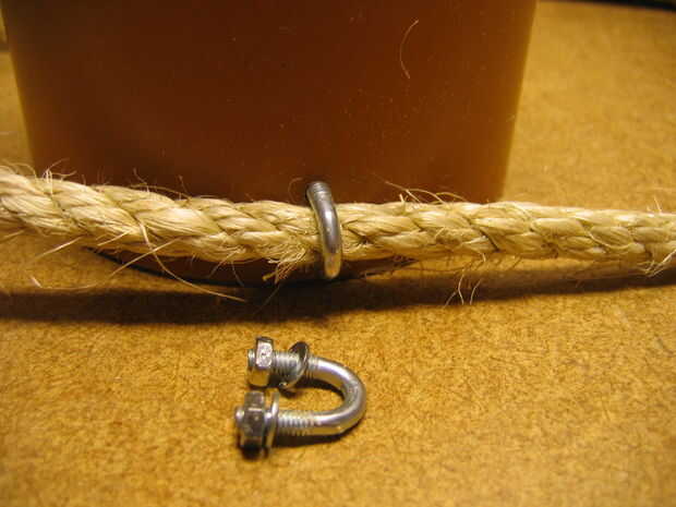 Perfore dos agujeros pequeños enfrente de las cortes para el perno en u. Coloque el perno en u para permitir que una vuelta de la cuerda sin ninguna diferencia.