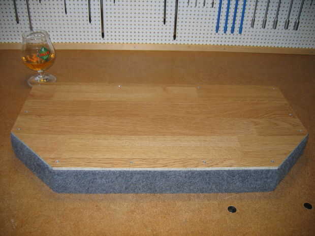 Recorte una placa base en una placa de madera. Crear chaflanes en un lado.