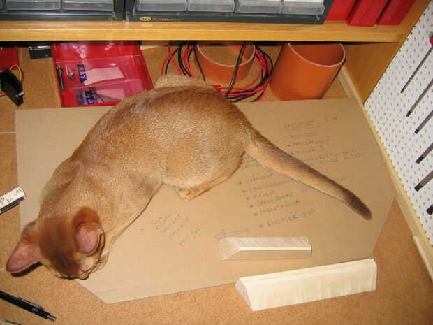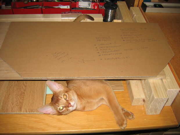 Empieza con un simple prototipo de cartón. Una distancia de 150 mm entre la plataforma y subir post parece perfecto... suficiente espacio para un gato de escalada y no lejano que alcanzar.