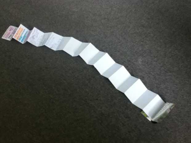 Un día tuve una idea para mi propia lista de tareas. La idea es crear una tira de papel larga continuo que es estilo acordeón plegado a tamaño de bolsillo. Me han dicho que esto se llama un cuaderno de estilo "Zig". La inspiración vino de mirar a un recibo de abarrotes larga después de un viaje de compras grandes. He utilizado un recibo para crear mi primera lista pero me sentí muy auto consciente de personas viendo mis compras, por lo que rápidamente abandoné esa idea. Si no tienes ningún problema con eso; gran trabajo para que usted pase al paso 3.