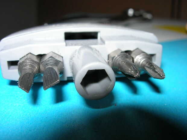 Esta es mi caja de herramientas de tamaño de bolsillo. Tiene todo lo necesita para arreglar las cosas fuera de mi casa y puede ser utilizado como un kit de supervivencia. Contiene herramientas como destornilladores pequeños, marcador pequeño y medici