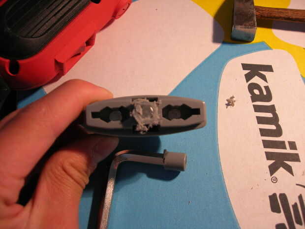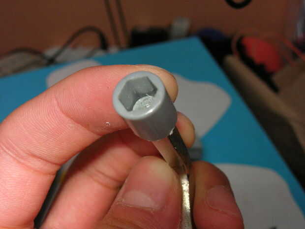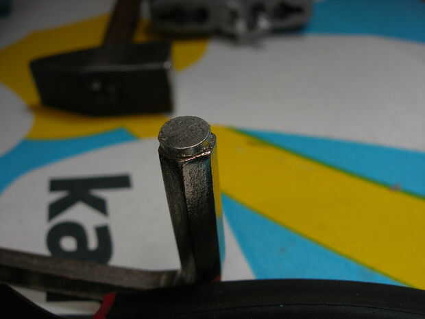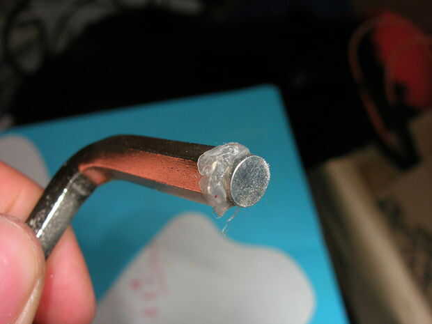 Importante: no poner demasiado pegamento sobre el imán. Usted quiere que sea tan limpio y ordenado posible. Otra nota, asegúrese de que el imán es plana y no inclinada, o bien la punta del tornillo no será tan segura como podría ser. Y pegar el imán en el extremo corto de la llave hexagonal, por lo que tendrá más influencia al atornillar algo.
