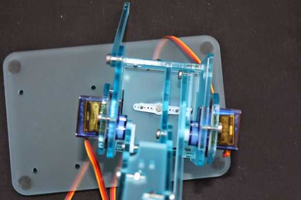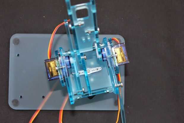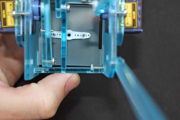 Empuje la base montada en el servo de la base. Gire todo el camino hacia la derecha y quitar, poner nuevo como se muestra en la segunda imagen aquí y el tornillo pequeño (no demasiado apretado!).