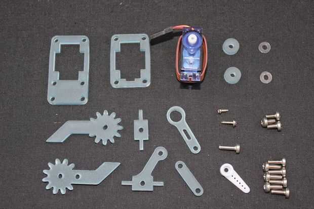 Próximo uso en que la finas piezas se muestra imágenes de cinco y seis aquí. Tenga en cuenta la orientación. Estos porta en el lado y actuarán como monturas. Creo que esta construcción es muy inteligente y es el trabajo de Jack Howard, co-creador de la #meArm.