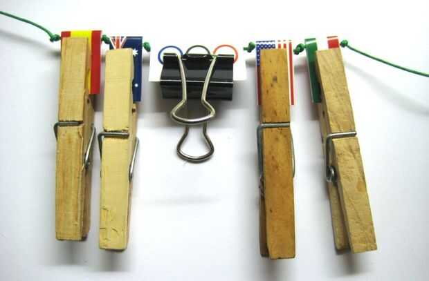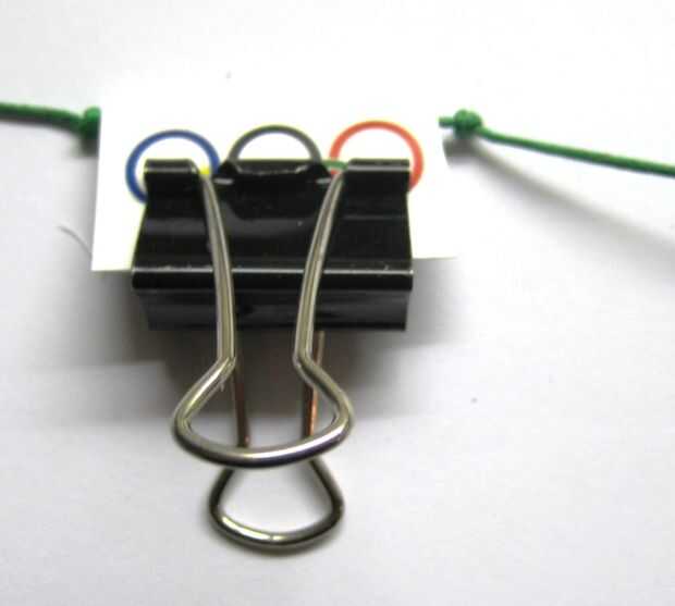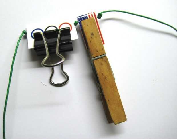 Agregar las otras banderas, nudo en el medio y clip las banderas juntos. Anudar los extremos.