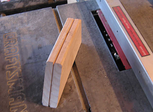 Opcional: Para un poco de ayuda extra al estar inclinado decidí cortar una ranura de 2 x 4. El dado es profundo y ancho suficiente para montar el cable en él casi al ras. Esto ayuda con sujeción y de flexión. Usé mi sierra de mesa para conseguir un buen corte. Esto podría hacerse también con una herramienta dremel rotary o incluso una escofina de madera.