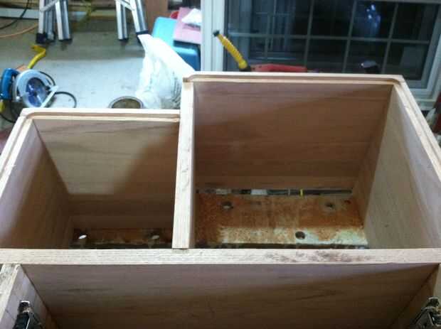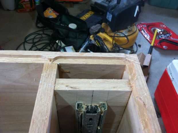 Podría dejar su biblioteca abierta, pero creo que poner una copia en la plataforma mejora el aspecto. Para hacer esto usted necesitará router un surco a lo largo de la parte interior los bordes de las juntas fuera de la parte posterior. La ranura debe ser un cuarto de pulgada de profundidad, del mismo tamaño que el espacio entre las placas en el interior que se corta más corto que el resto. Dependiendo de qué tipo de broca utiliza, puede (como yo) ejecuta en un pequeño problema donde el router no puede llegar lo suficientemente lejos. Para solucionar esto cambié un poco recta y sólo libre la ranura. Este paso es básicamente por qué necesitaba tanto relleno de madera. Una vez usted router tus surcos, medir y cortar la madera contrachapada de 1/4 para adaptarse a. Usé una sierra caladora para cortar la madera. Pruebe la colocación de la espalda, si cabe, buen trabajo! Si no te puede que sea router y ampliar tus grooves o cortar su espalda otra vez. Una vez que usted volver a caber en la estantería, pegamento y fije esa cosa! Junto con el pegamento que usé clavos y una clavadora de aire para seguro la parte de atrás, pero me siento mientras usted pone algo de peso en la madera contrachapada a la abrazadera mientras que el pegamento se seca las uñas es un dolor innecesario.