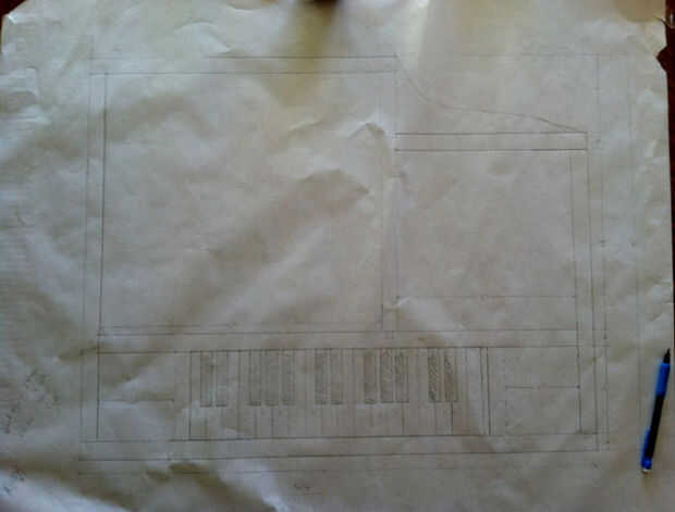 El primer paso es planear las dimensiones y diseño de la plataforma. La persona para que construyó este estante se va a la Universidad el próximo año, por lo que he construido la plataforma para sentarse bien en su escritorio dormitorio promedio y también tienen su libro de texto universitario promedio. Primero dibujó un bosquejo áspero de cómo se vería cumplido. A partir de ahí decidí en qué dimensiones quisiera utilizar. La estantería que construyó era dos pies de ancho, aproximadamente 22 pulgadas de altos y 11 y un cuarto pulgadas profundas. Dependiendo de donde desea su biblioteca para sentarse, usted puede cambiar estas dimensiones algo más a tu gusto. Después de decidir sobre dimensiones dibujé un plan completo por lo que pude ver cómo sería el producto terminado. Probablemente no es necesario elaborar el plan vida de tamaño, especialmente si usted no sólo tiene un pie de 2 * 2 pedazo de papel que miente alrededor, pero para mí fue muy útil. Si comparas mi dibujo a la estantería completa final amplié el teclado (que dobla como un cajón) allí por el acortamiento de las piezas de los lados (que se abren y como pequeños compartimentos dobles). Después de pasar horas dibujándolo era el momento de hacer una lista de qué materiales se necesitarían para completar el proyecto, que nos lleva a...