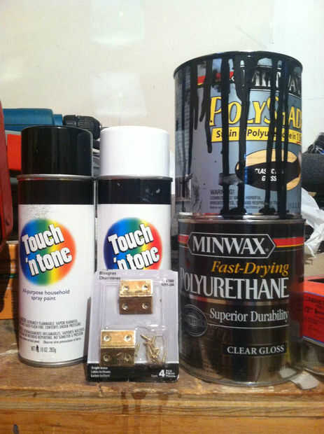 - Usé un tinte negro brillante y barniz combinado para el poliuretano brillo exterior y claro para el interior.
