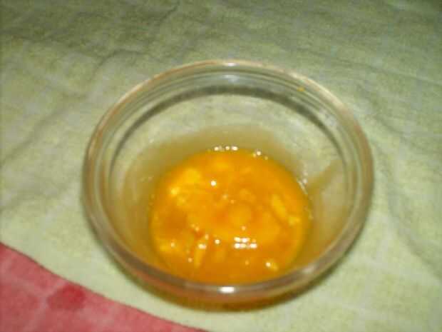 Microondas la yema de huevo 5 segundos en potencia media.