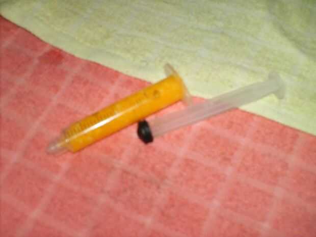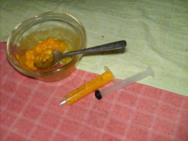 Llene la jeringa con la yema de huevo. Si la yema está líquida, microondas 5 segundos más. Si la yema es demasiado sólida, agregar unas gotas de agua y revolver. Descarga la jeringa para homogeneizar la yema de huevo. Llene la jeringa otra vez.