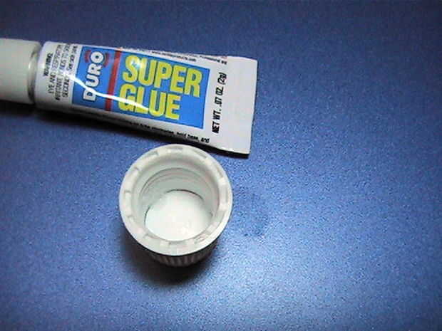 Una vez liberado, reglued el disco en la parte superior de la tapa. Coloque el disco y pegamento desde el interior, usando bicarbonato de sodio para fortalecer.
