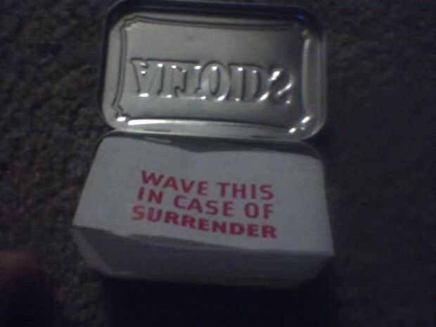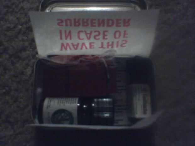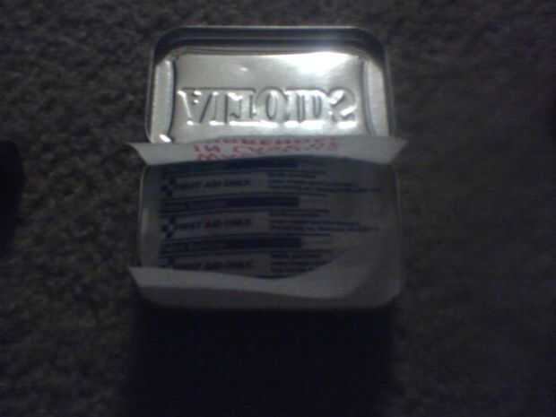 en mi kit de bolsillo med que tomo en todo el mundo, he aprendido más en su lata Altoids caben si pones todos los productos de papel-como en la parte inferior como lo hice. También se utiliza ese gran papel que vino con mi Altoids para envolver alrededor de todo por lo que tomó menos espacio. Si eres bueno en Tetris, aprenderás que hay mucho que puede caber dentro de una lata Altoids.