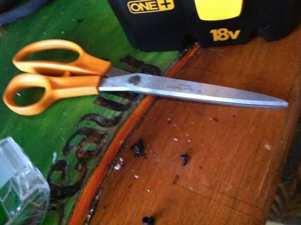 7. tijeras - algo más agudo que las tijeras de seguridad estará muy bien.