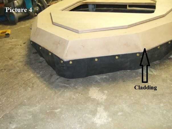Desde entonces puedes comenzar a añadir un revestimiento alrededor de la base para crear una sólida estructura como se ve en la figura 4. Esa base permite agregar el faldón de goma que le da su capacidad de vuelo estacionario.