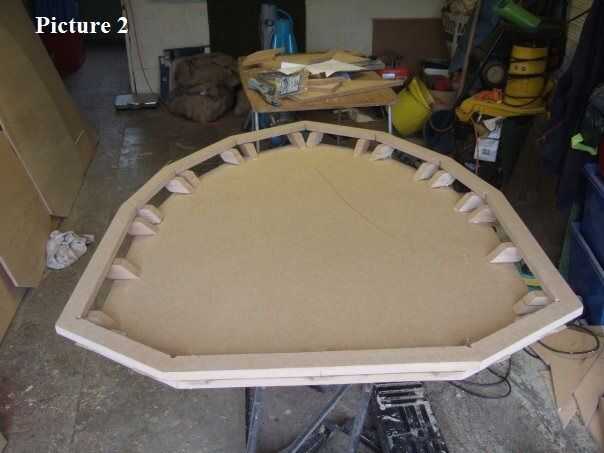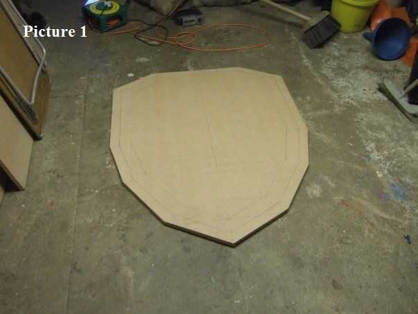 Tiene la opción de como hacer la base. Puede que sea como una unidad separada o construir la falda sobre la misma. Si desea hacerlo puede considerar partiendo de la base/de la falda para facilitar su transporte. En cualquier caso, la base debe ser en primer lugar como una sección y cortar si es necesario no. Empiece utilizando la hoja de MDF y corte como se ve en la imagen 1.