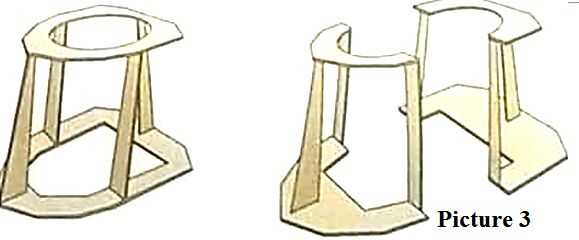 Puntales verticales pueden prueba de montados a la forma base (imagen 1) como se muestra en uno de los diagramas restantes sólo que tengo (cuadro 3). Se trata de una capa media más pequeña del cuadro 2 que se corta para proporcionar una parte inferior capaz de fractura permitiendo la falda permanecer en una sola pieza con las ruedas todavía Unidas.