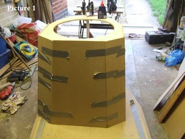Fije el panel con pegamento para madera y panel pernos golpe en la cabeza por lo que pueden ser ocultadas con relleno debe entonces producto de un marco que parece cuadro 1. Una vez que todos los paneles son conexión taladrar los agujeros para los hemisferios a la forma en como se ve en la figura 2.