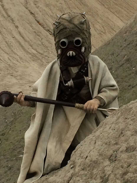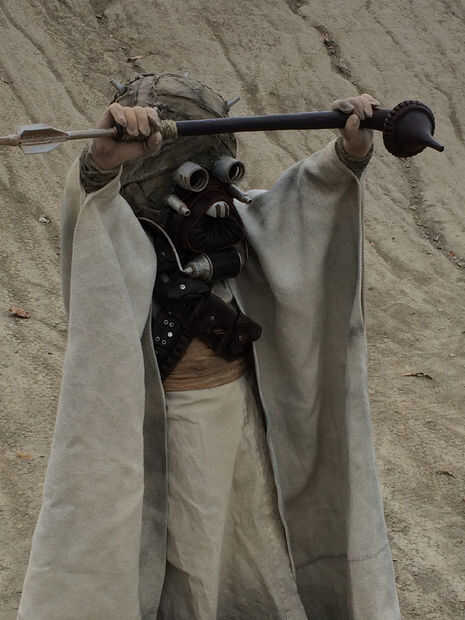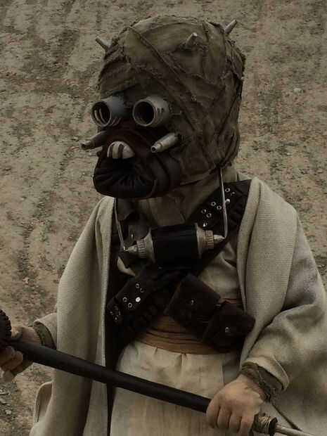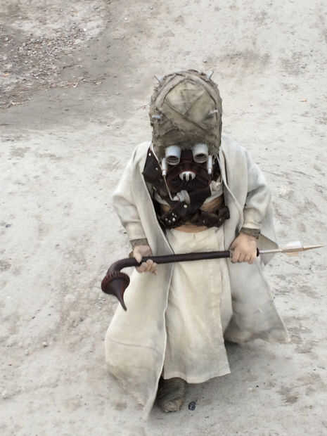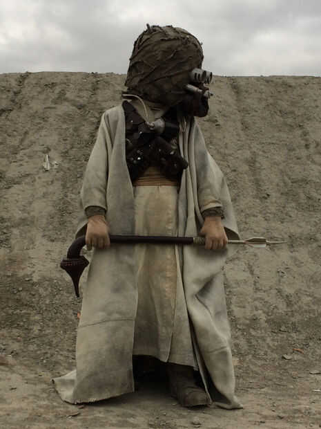 Tusken Raider, en el extremo salvaje del espectro nativo de Tatooine se llaman arenas por los pobladores y son famoso miedo de viejas personas en batas largas tropezando hacia ellos. Hice esto y el resto del traje de Halloween pasado como una última