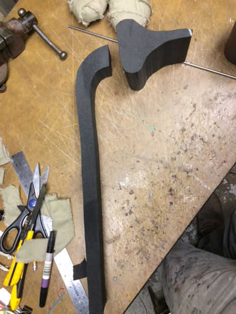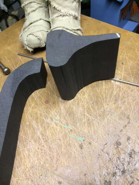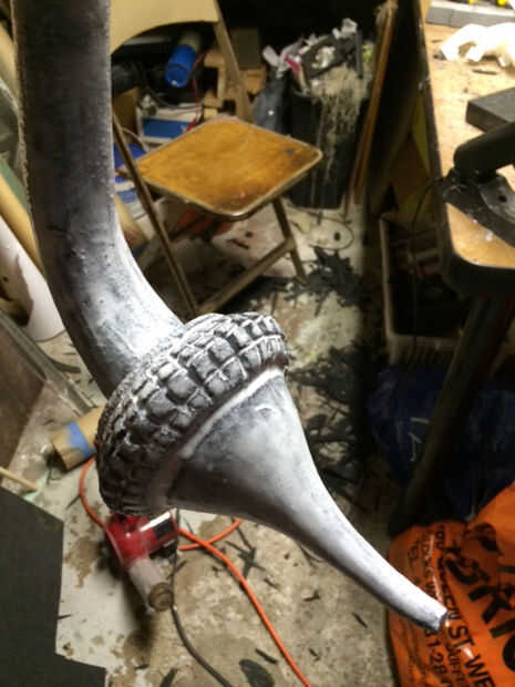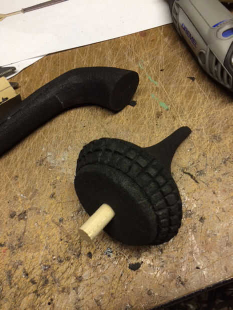 La cabeza y el eje fueron talladas en espuma de plastazote, lijada con una dremel y con la mano.