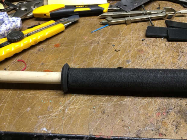 Se agregó una barra de acero entre el eje para evitar que la espuma de flexión. Entonces sujeté la cabeza en el eje usando pegamento caliente y un trozo de espiga para fuerza.