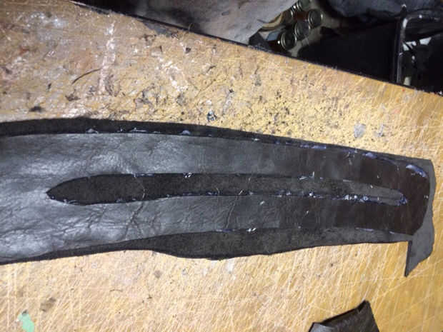 Otra vez, hice la placa principal antes de cortar las plantillas de la bolsa. En tanto bandoleras doblado mi piel para darle más sustancia.