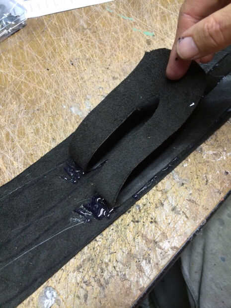Una correa fue clavada a la correa principal delantera mientras que el otro era un pedazo continuo que se extiende desde la cinta principal.