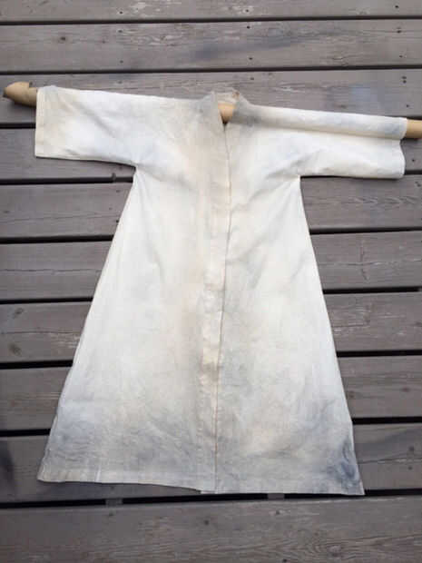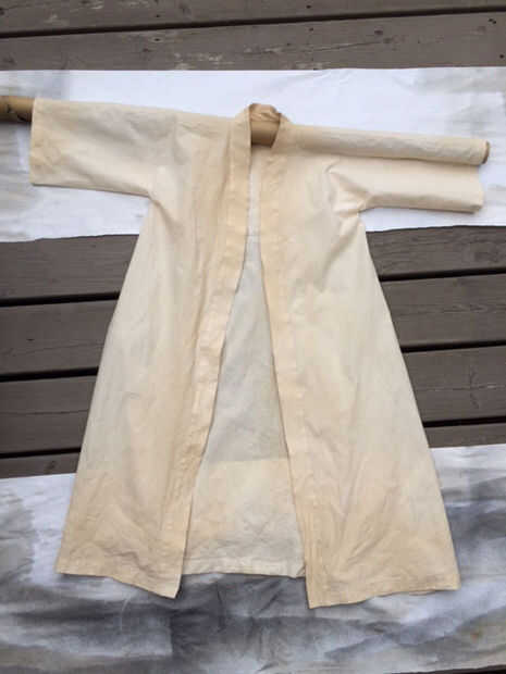 Una vez que recibió los trajes terminados que tuve que recortar el manto a lo largo de la parte inferior y luego el tiempo. Guardé simple y solamente usa pintura en aerosol negra y gris y una botella de spray llenado de té. Sacan el polvo las túnicas con pintura de aerosol, centrándose en áreas de alto tráfico. Entonces spritzed las túnicas con el té concentrado en la parte inferior, cuello, puños etc..