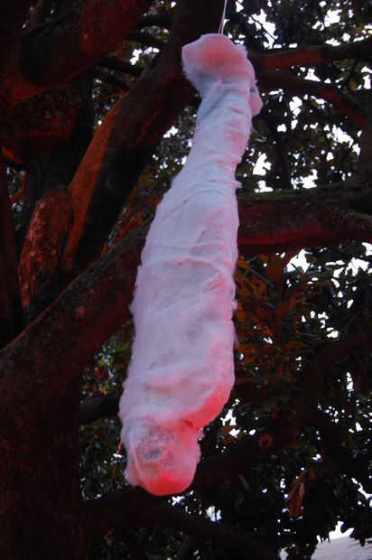 Usar algunos 1/4" blanco paños línea tipo de cable para el capullo de la mano de sus pies en un árbol o tu casa embrujada uso blanco para parecerse a telas de araña grande.