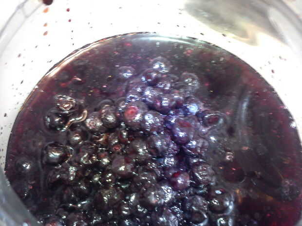 ¿Qué hacer con las bayas? Van a ser un poco descolorado después de un mes, pero puede poner en una olla y guisado en una salsa buena para verter sobre el helado.