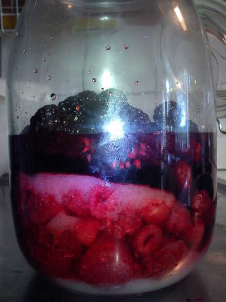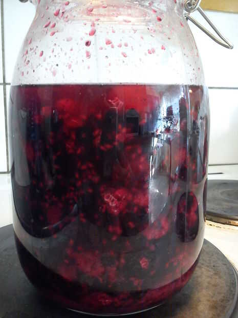 - Filtro contiene de las bayas y un licor de color claro muy bien. Cuanto más tiempo el sit de bayas en el vodka/Ron mejor el sabor va a ser. (Fotos de esto es subir en alrededor de un mes)