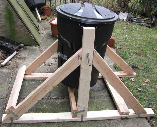 Ahora todo depende de qué tamaño basura puede seleccionar - si usted consigue uno realmente grande, necesitará cortar la madera en trozos más grandes para construir un marco lo suficientemente grande como para permitir que tu puedas (una vez que se ha suspendido por la varilla o tubo de PVC) a 360 grados sin golpear cualquier parte de la estructura. Por lo tanto comprar su basura y luego averiguar qué pedazos de madera del tamaño que necesitará para construir un marco lo suficientemente grande. Rama puede 35 galones por $14,99 y probablemente no tiene sentido ir cualquier más pequeño que el.