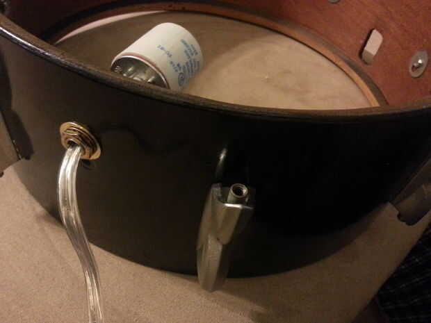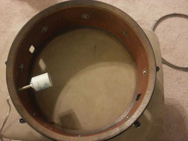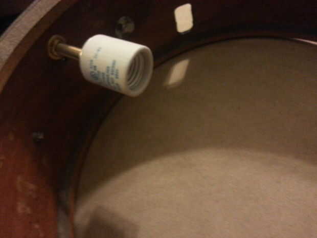 Después de cableado el cable a la toma, había jodido el manguito en el pezón y apretar el tornillo de ajuste. Ahora nuestro tambor está cableado y listo para una bombilla. Usé un compacto fluorescente como no consiguen tan calientes como incandescentes.