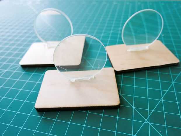 Pega tus cosas favoritas óptica! Hemos utilizado algunos trozos de madera como bases, y entonces añades lo que quieras. Algunas cosas que recomendaría para empezar incluyen: