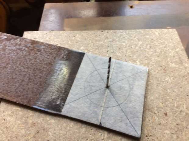 Después de haber perforado un agujero de 3mm en el centro, había invertida la broca y solía 'pin' del metal a mi placa base.