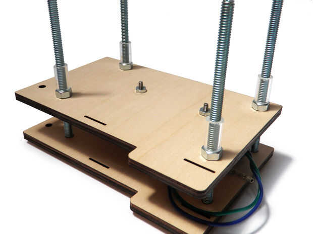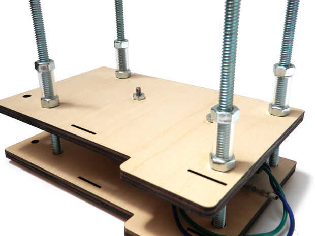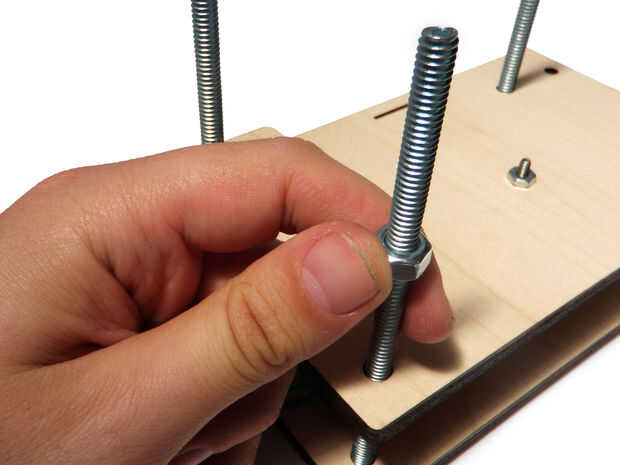 Enrosque una tuerca abajo uno de los pernos para sujetar en su lugar y luego repetir para todos los otros tornillos