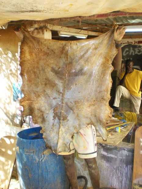 Después de dejar el cuero en agua durante un tiempo, se debe quitar (tenga cuidado huele) cuelga de un poco quitar el agua.