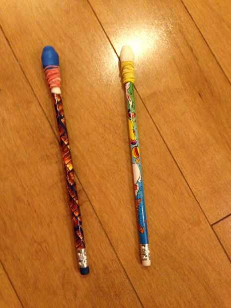 Tomar dos lápices y cubrirlas con varios globos y amarre con bandas de goma.
